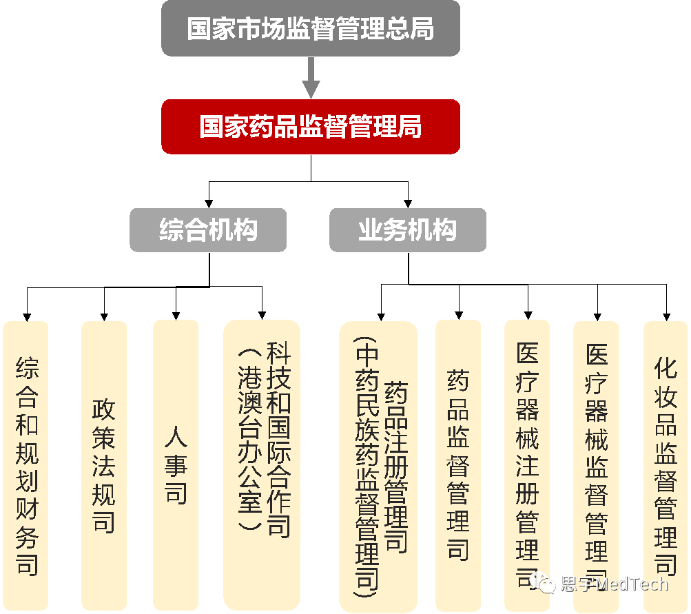 國家藥監(jiān)局設立9個內(nèi)設機構,均為副司局級,包括綜合機構:綜合和規(guī)劃財務司、政策法規(guī)司、人事司、科技和國際合作司(港澳臺辦公室),以及業(yè)務機構:藥品監(jiān)督管理司、藥品注冊管理司(中藥民族藥監(jiān)督管理司)、醫(yī)療器械監(jiān)督管理司、醫(yī)療器械注冊管理司、化妝品監(jiān)督管理司。