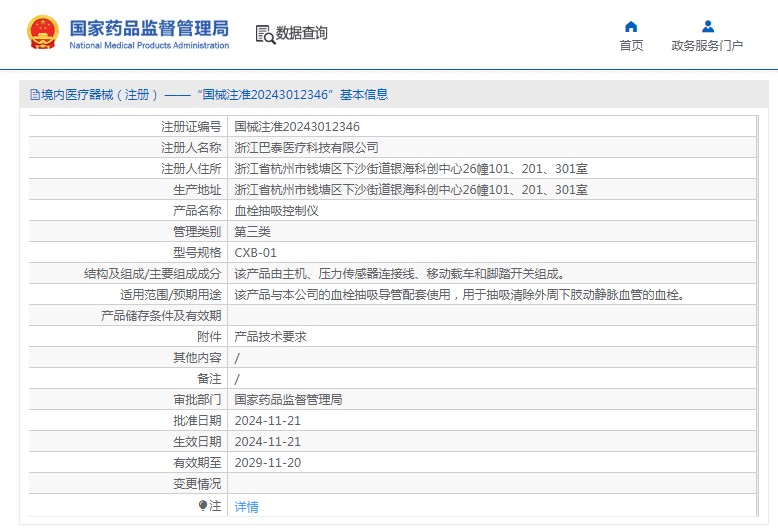 該產品與本公司的血栓抽吸導管配套使用,用于抽吸清除外周下肢動靜脈血管的血栓。