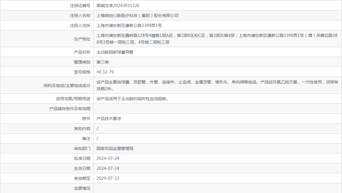 微創(chuàng)主動脈阻斷球囊導管HC32-79是***款***于復蘇性主動脈球囊阻斷術(REBOA)的介入醫(yī)療器械,以下是關鍵信息: