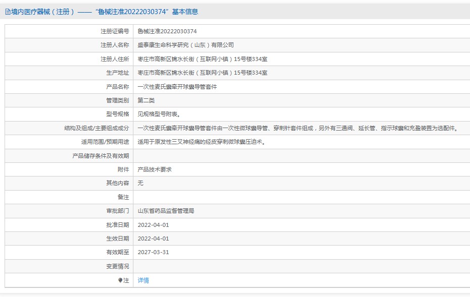適用范圍/預(yù)期用途:適用于原發(fā)性三叉神經(jīng)痛的經(jīng)皮穿刺微球囊壓迫術(shù)。