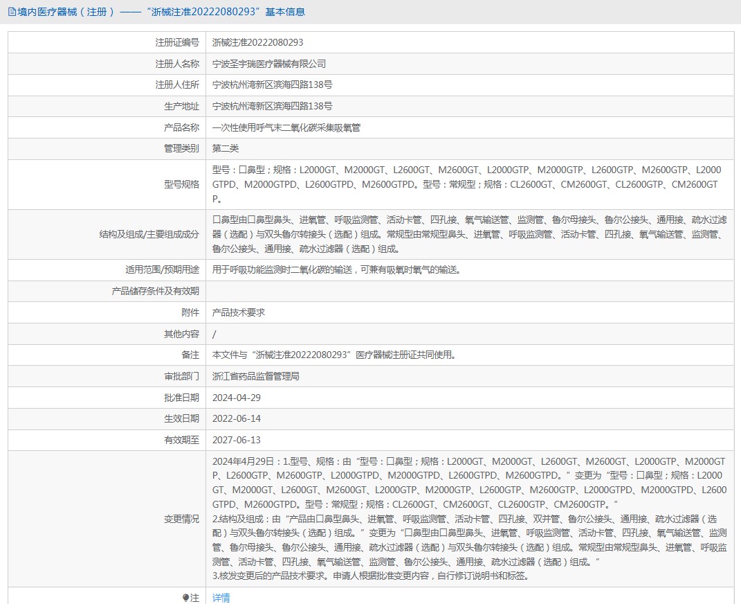 適用范圍/預(yù)期用途:用于呼吸功能監(jiān)測(cè)時(shí)二氧化碳的輸送,可兼有吸氧時(shí)氧氣的輸送。